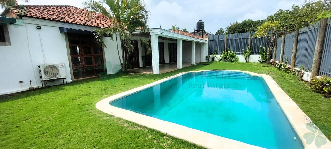 Hermosa casa en condominio privado. Cuenta con 3 cuartos con AC inverter, 2 baños, adicional cuarto de servicio con su baño. Lavandería de buen tamaño con alacena y conexión para lavadora y secadora. Closet de blancos entre los cuartos. Piscina, jardín. No incluye muebles solo cocina y refrigeradora.
