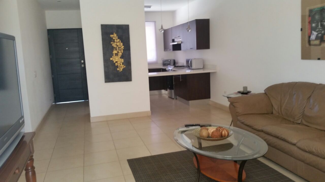 Apartamento nuevo en condominio seguro y piscina comunal, consta de 3 habitaciones, 2 baños, sala, cocina, comedor, terraza, jardín en planta baja, huellas vehiculares, completamente amueblado.