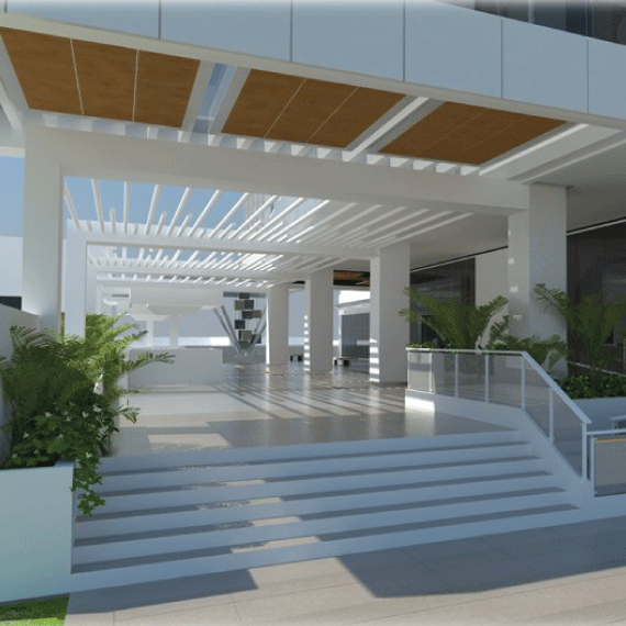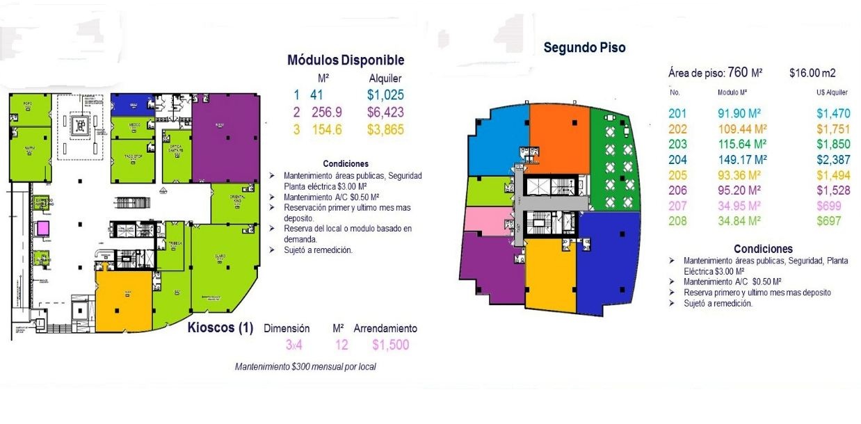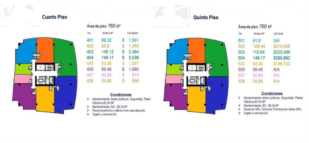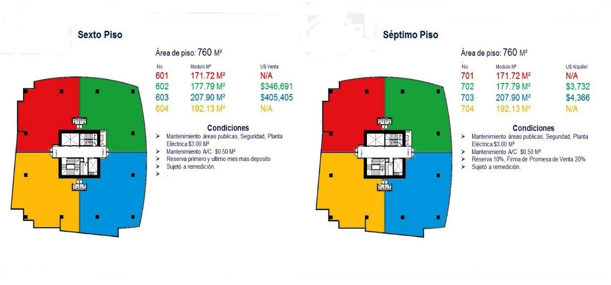 Torre de ocho pisos de uso mixto con 15,000 Mts.² de construcción de concreto reforzado, que garantiza protección antisísmica y antiincendios, destinado a albergar las oficinas corporativas de muchos de los negocios más importantes del país, primera planta con espacios Comerciales, restaurantes y comercios. El edificio contará con iluminación a través de lámparas LED, sistemas de aire acondicionado de alta eficiencia y servicios sanitarios con descarga en seco. Adicional, el diseño cuenta con panelería solar, que garantiza la generación de energía para abastecer de electricidad a más del 20% de las áreas comunes, cuatro plantas adicionales con capacidad para 245 vehículos. Precio de renta por Mts.²: US$19.00 por Mts.² + US$3 Mantenimiento + IVA.