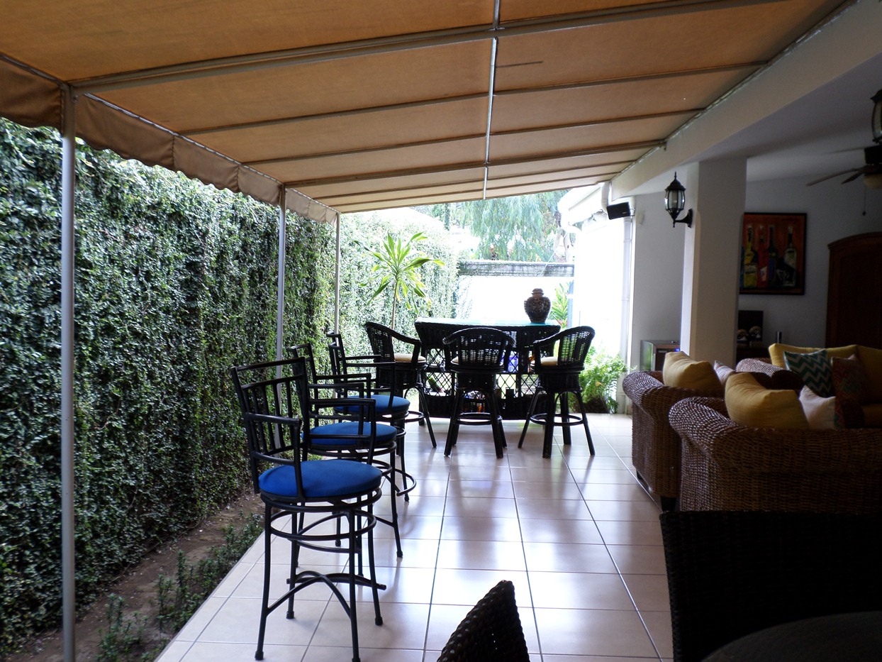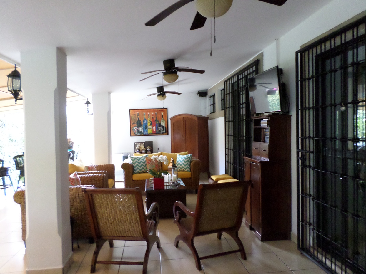 Casa amplia con espacios abiertos con excelente ventilación e iluminación, bonitos acabados, ubicada en zona residencial con acceso privado, vigilancia las 24 horas, acceso controlado. La propiedad cuenta con las siguientes especificaciones: 3 habitaciones (habitación principal con walking closet), 2 baños, ½ baño de visitas, sala de estar, sala, comedor, cocina, amplia terraza, habitación de servicio completa, área de lavandería, bodega, 2 tanques de reserva de agua, planta eléctrica, estacionamiento para 4 vehículos (2 bajo techo), portón eléctrico, aires acondicionados, abanicos de techo, amplia área verde con jardín y un apartamento completamente independiente con aire acondicionado, abanico de techo y su propio baño.