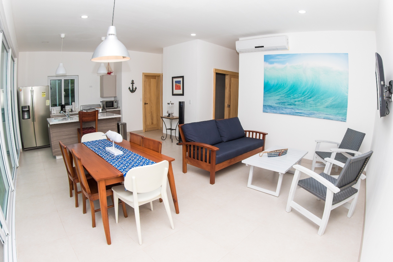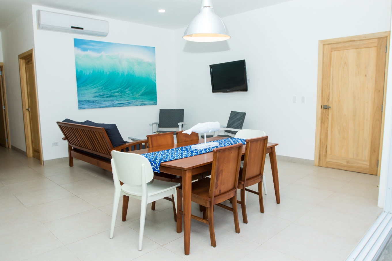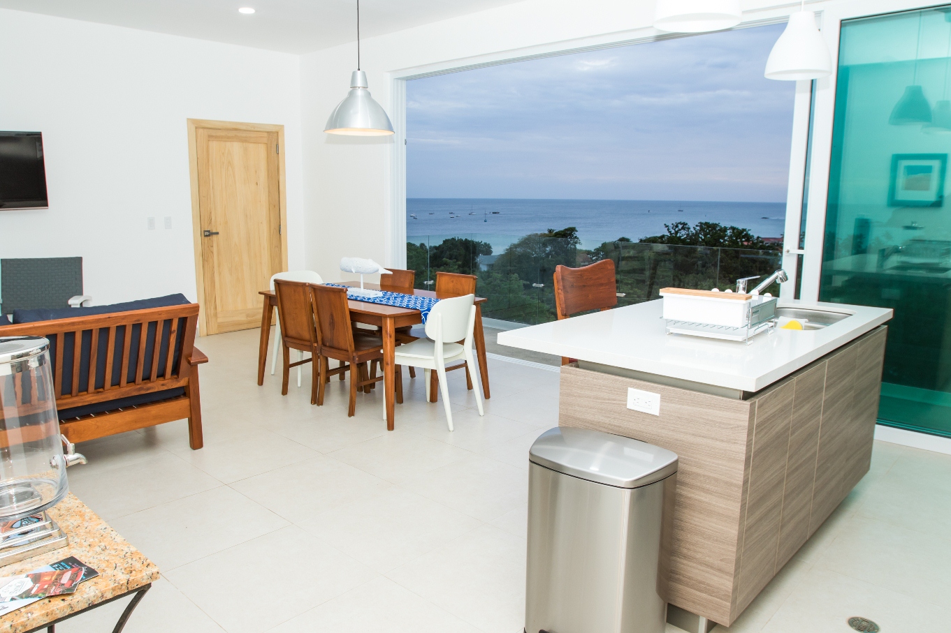 Cómodo y moderno apartamento completamente amueblado, con una ubicación privilegiada cerca del pueblo y una vista espectacular de la Bahía de San Juan del Sur se puede caminar hasta la playa (4 cuadras) condominio agradable y accesible, con seguridad las 24 horas, estacionamiento privado, planta eléctrica, cisterna de agua, piscina y área verde con jardín. El apartamento cuenta con las siguientes especificaciones: 109 mts² de construcción, 3 habitaciones, 3 baños completos, sala, comedor, cocina con desayunador, balcón, aires acondicionados, abanicos de techo.