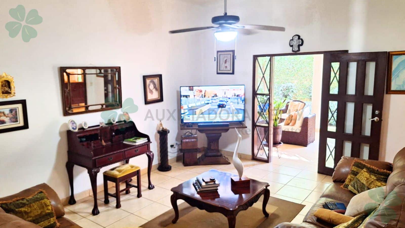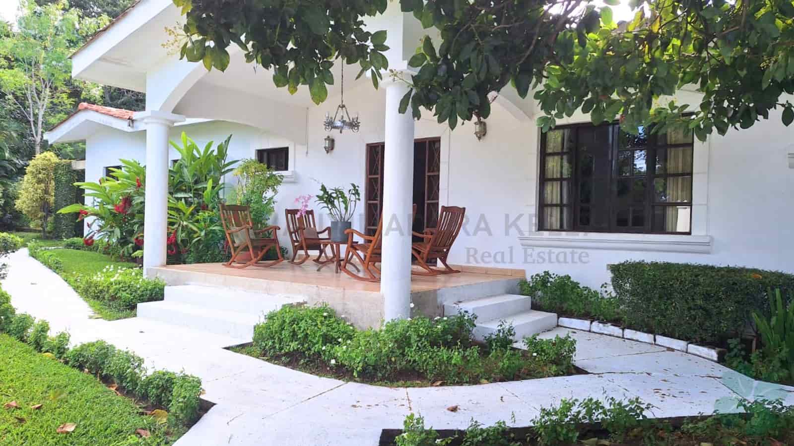 Casa en la Estancia, cuenta con 3 habitaciones c/u con su unidad de aire acondicionados y abanicos de techo, 3 ½ baños, un estudio tipo oficina, sala, comedor, cocina área de televisión, área de juegos, terraza, jardín grande, área de servicio completa, casita para vigilante; además posee tanque de reserva de agua con bomba hidroneumática y tanque de agua caliente.