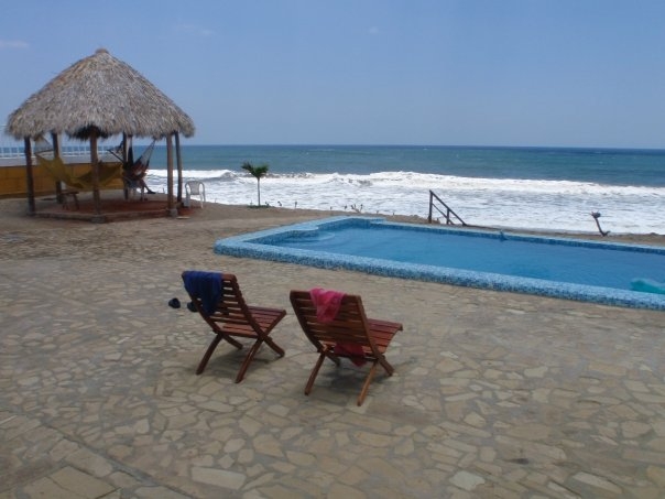 En la costa del Pacífico, casa frente al mar se alza sobre una colina rocosa con escaleras que le llevará sólo unos pasos de distancia de la playa de arena volcánica caliente, se encuentra en un terreno de 2895.83 vrs. Cuenta con 4 habitaciones, 3 baños, sala, cocina, comedor, piscina de azulejos de mosaico que da al océano, garaje para dos vehículos, aire acondicionado. Se encuentra a 25 minutos de la ciudad colonial de León.