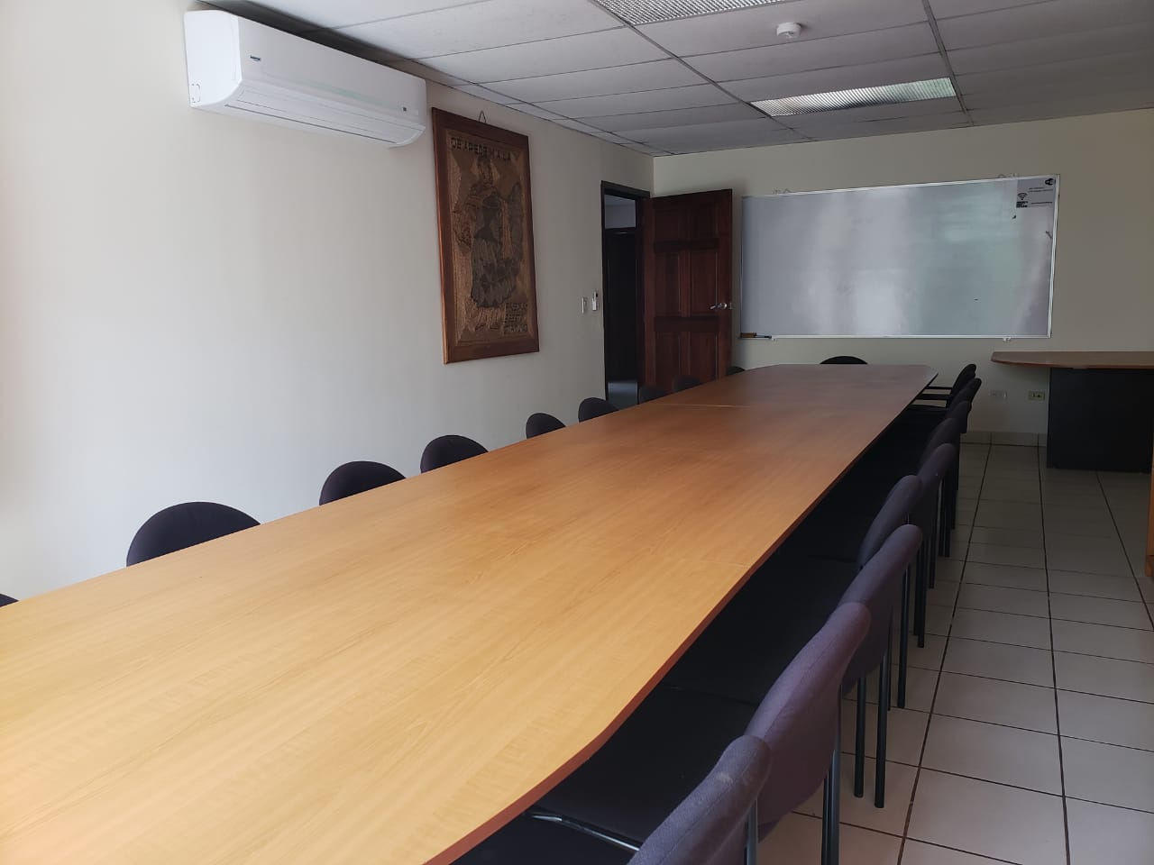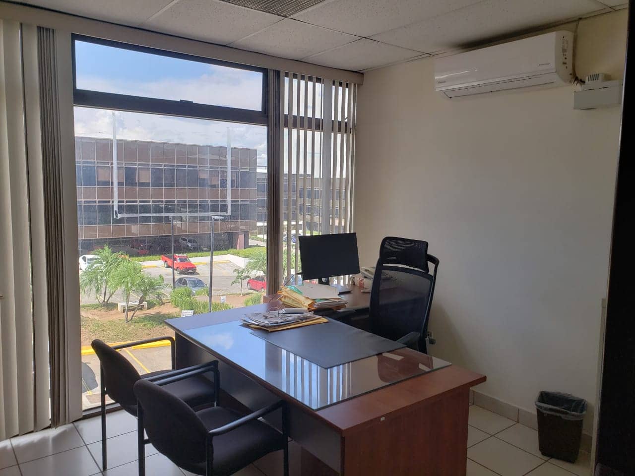 Oficina corporativa de 103 mts2 completamente amueblada y equipada; distribución: 4 oficinas independientes con sus unidades de aires split 12mil btu, de alto ahorro energético, sala de conferencias con unidad de 18mil btu, baños externos, cocina, bodega, 3 estacionamientos privados bajo techo y estacionamientos para visitas, excelente ambiente iluminación natural y ubicación.